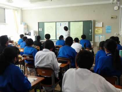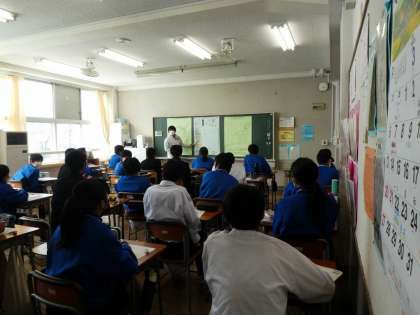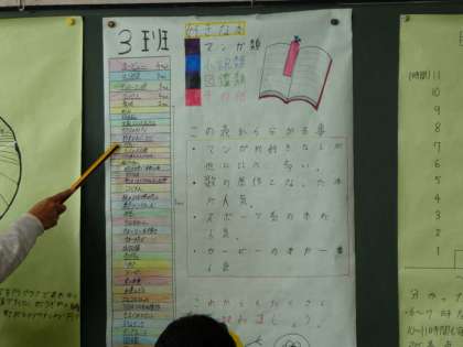 1年生数学科では班ごとに作成したレポートの検証が行われていました。「自分の好きな本」とても興味深い集計もありました。PCの発表もよいですが、手書きの発表も味わい深く、どちらも甲乙付けがたいです。大切なのは「一生懸命に取り組めたか」という部分に尽きるのでしょう。