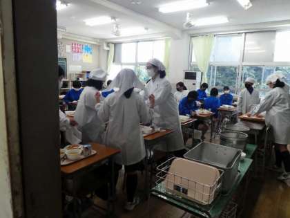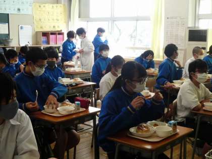 今のクラスでの給食タイムも今週で終わりです。消毒や黙食とどのクラスも感染症対策にしっかり取り組んでいました。米米クラブや大事Manブラザーズの名曲が食事の雰囲気をなごめてくれます。メニューの「ふわふわたまごのスープ」で気持ちが「ふわふわ」になりました…。