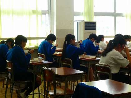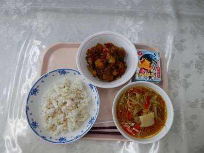 今日の給食は「春キャベツの回鍋肉、ワンタンスープ」です。放送室からはメニューについてのコメントが流れてきました。「春キャベツ」とてもやわらかく、固まった心をほぐしてくれました。