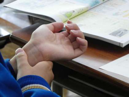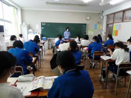 自分の1分間の脈拍数や呼吸の回数を知る、とても大切なことです。授業の中では静かに自分の指を血管にあてその波の数を数える姿がありました。心臓がいかに精密高性能なポンプであるかを実感できます。