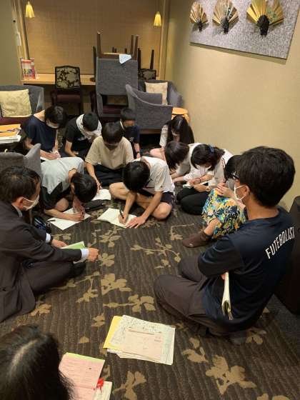 3年生修学旅行1日目 公開日 2022/05/13 更新日 2022/05/13 できごと 実行委員の会議が終わり、班長会議中です。今日1日の反省と明日の確認をしています。この後、各クラスに分かれて班別会議を行います。 いいね(0)