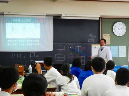 1年生技術科では板の「曲げ強さ」について学んでいます。スクラムを組むことで強度が二乗倍になります。生徒と指導教諭の対話によりその法則を見つけることができました。チーム(組織)を強くするヒントを得た感じがしました。
