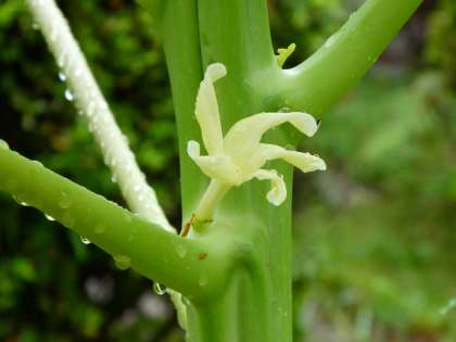 成長しています 公開日 2023/09/04 更新日 2023/09/04 できごと 科学部が栽培中の「パパイヤ」が順調に成長しています。背丈は1m60くらいでしょうか。花らしきものが初々しく出てきています。実ができる日が近づいているようです。 いいね(0)