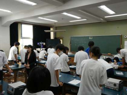 3年生理科では「電解質の水溶液」をテーマに塩化銅の水溶液に電流を流す実験を行っていました。「ビーカーの水色」の美しさが輝いて映りました。実験に臨む生徒たちの表情もきらきらしていました。