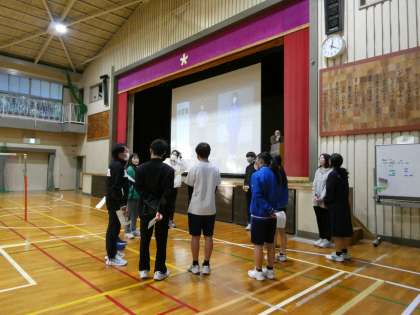 放課後、体育館では新入生説明会のリハーサルが行われています。新入生を迎える準備が少しづつ始まっています。