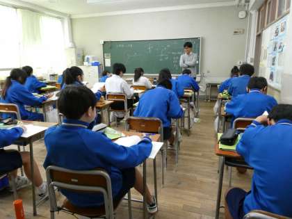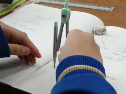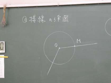 1年生数学科では「円の接線」をコンパスを用いて作図していました。いろいろな方法があるようです。脳から手先、手先から脳へ、多様な信号の行き来で作図が完成するようです。