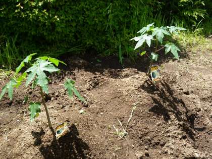 科学部がパパイヤづくりに挑戦しています。肥料をしっかりあげて結実するといいですね。
