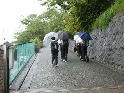 月曜日、雨の朝となっています。今週は運動会が予定されています。年に一度の行事、どうかお天気になりますように。生徒たちは坂や階段を淡々と力強く、登校していました。あざみは雨に打たれ孤独に輝いています。