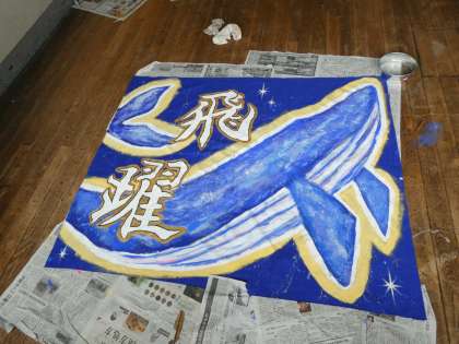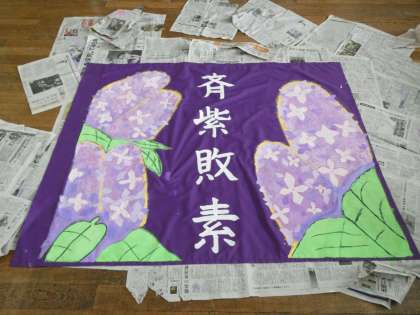 応援旗も完成に近づき、出番を虎視眈々と待っている感じです。「斉紫敗素」はじめて知る四文字熟語です。「失敗から成功が生まれる」という意味のようです。それぞれの応援旗から「思い」や「気迫」が伝わってきます。