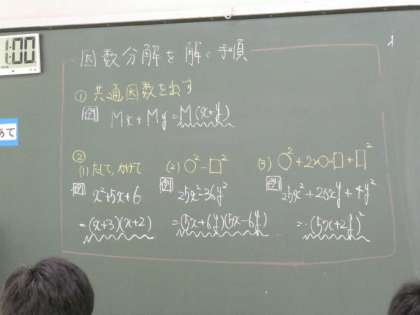 3年生数学科 公開日 2024/05/13 更新日 2024/05/13 できごと 3年生数学科では因数分解に取り組んでいます。数学という教科は「きれいに答えがひとつ決まる」という魅力があります。混沌とした社会や人生の中では心惹かれる学びです。分かりやすい教諭の説明と板書が生徒たちの集中を高めていました。 いいね(0)
