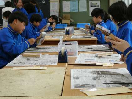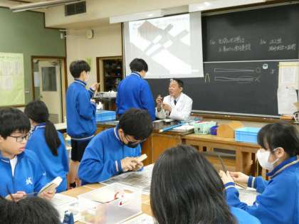 ひとつの作業工程ごとに、教諭は一人ひとりの生徒のお箸を確認し、アドバイスをおくります。対話的な学びが為され、誰もがピカピカに磨きのかかった「黒檀のお箸」の完成をめざすことができます。見ている以上に難しい作業が、授業の中では淡々と確実に進められていました。