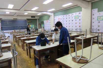 昼休みに、1年生が、中学校で初めての投票をしました。