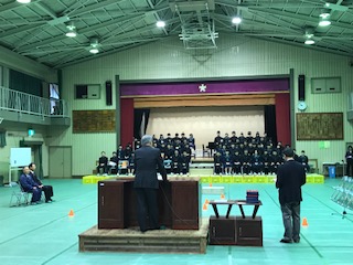 本日(3/7)、3年生は体育館で同窓会入会式を行いました。