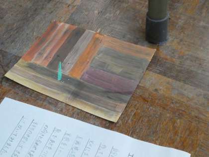 1年生美術科では「そっくりをつくろう!」をテーマに、「黒板」や「床」などをそっくりに描き、作品の鑑賞会が行われていました。ユニークな発想の授業で生徒たちは集中してまとめに入っていました。