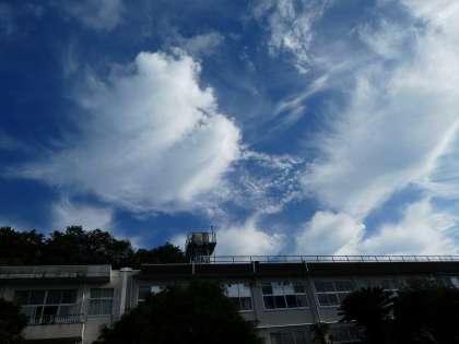 前期「お疲れさまでした」 公開日 2021/10/08 更新日 2021/10/08 できごと 10月8日(金)前期最終日です。昨晩は大きな地震があり、寝不足の人もいるかと思われます。空を見上げると「私も展示の部の仲間に入れてくれますか…」と浮き上がる雲さんが言っていました。 いいね(0)