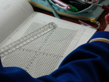 2年生数学科では「一次関数のグラフ」について学んでいました。関数とは「関係する数」ということで、やや難しい分野です。数学も自然界の一部として捉えると、空と雲の間にも関数は存在するのでしょうか…。