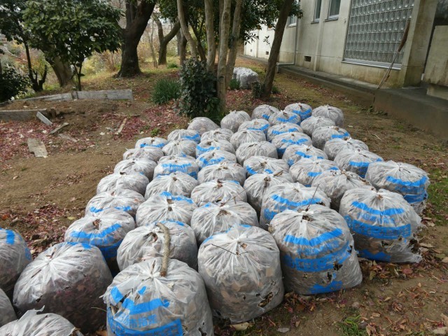 山の中腹に位置する本校は落ち葉が大量にでます。その掃除を校務用員さんが丁寧に行ってくれます。袋の数は50を超えていました。