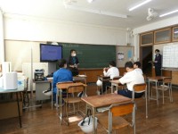 「栄養素調べの発表」の最中です。各班の発表が終わると、いろいろな質問が出て、それに答える場面があります。生徒同士の対話が授業を構成しています。教室全体が栄養素となり、ひとつの食事メニューとなっているようでした。
