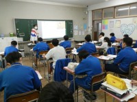 雨足が強くなってきました。生徒たちはアンブレラで身を覆い「おはようございます」の声とともに元気に登校しています。雨の線が見える一日となりそうです。雨の日には雨の中を…。