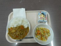 本日の献立は「ポークカレーライス、ベーコンとキャベツのソテー」です。カレーライス...