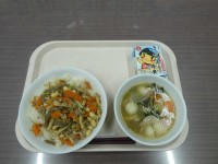 新年はじまりの給食は「鏡開き献立」です。「五目ごはん(さくら飯)、白玉雑煮」とお...