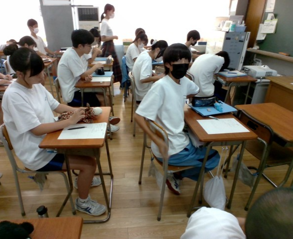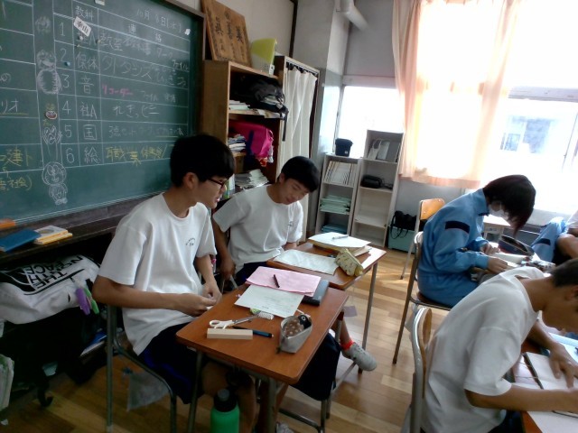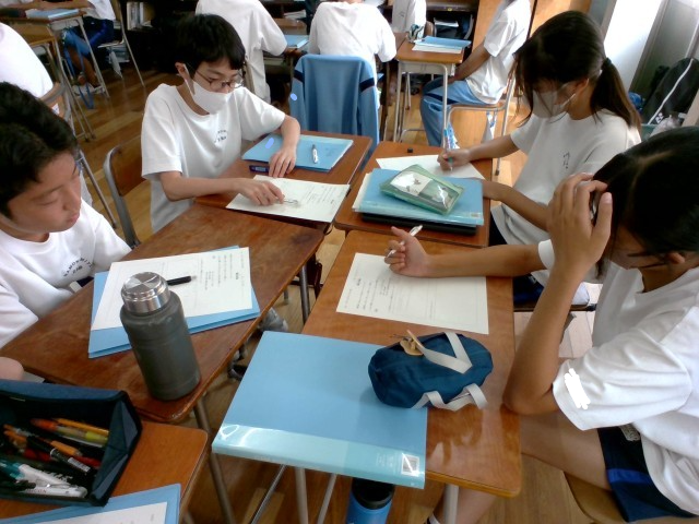 2年生の総合の授業です。12月に行う職場体験、第一次産業の体験をどのような意識を持って行うのかを考えています。