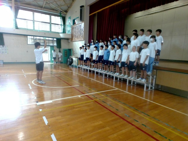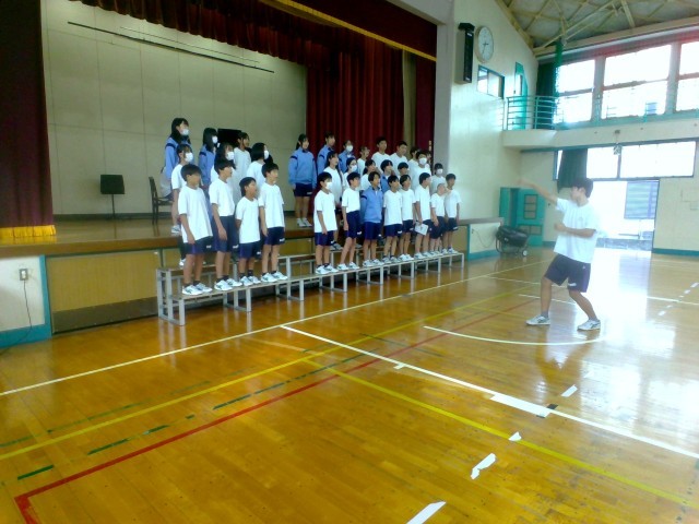 1年生の発表順 2番目は3組 曲は あさがお です。