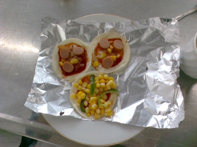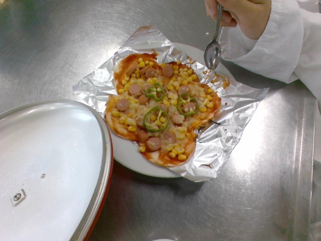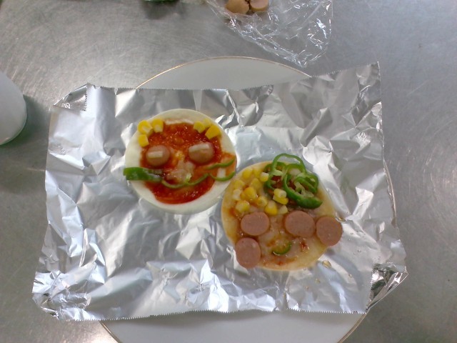 餃子の皮を使ってピザ作りをしました。各々猫やバレーボールを模したピザや