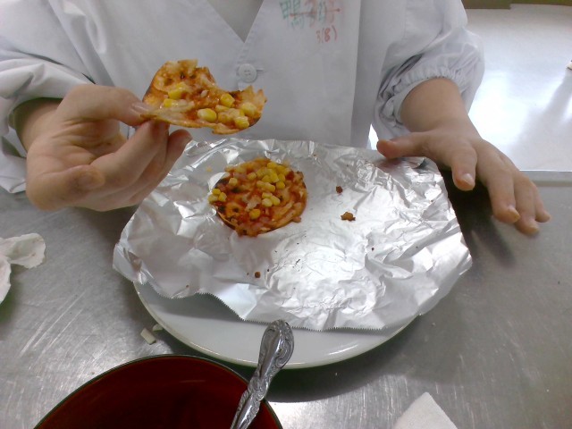 できたてのピザを食べた生徒たちからは、キラキラした笑顔と