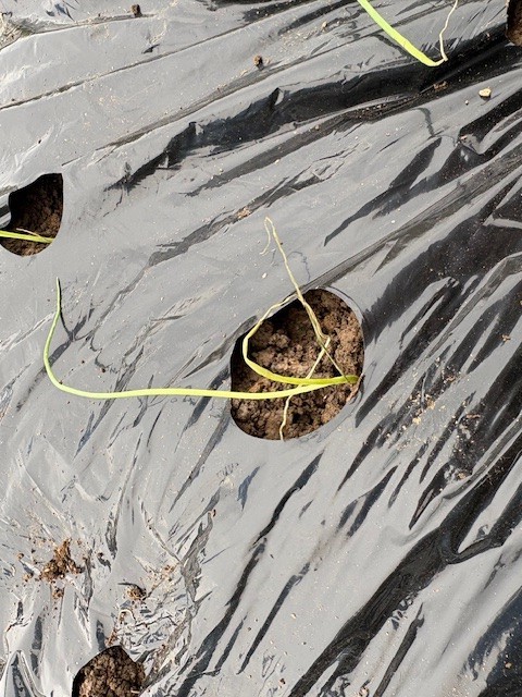月曜日に設置したマルチの穴に、気をつけながらみんなで1本ずつ