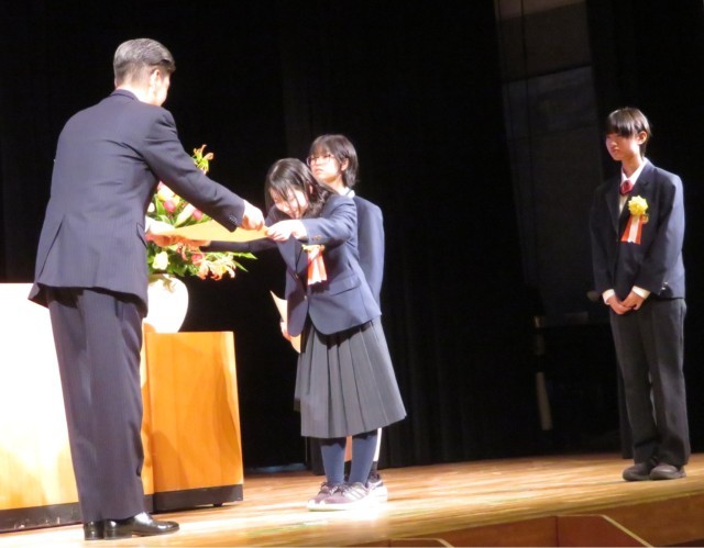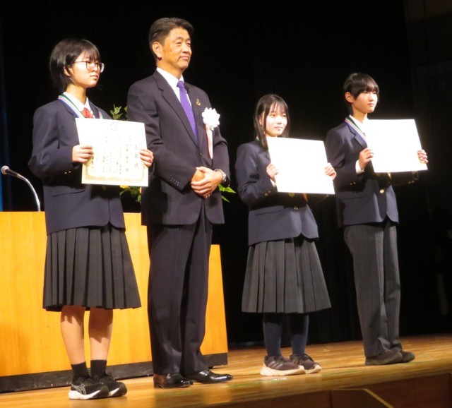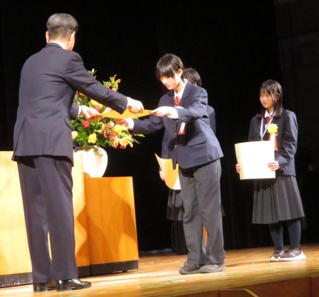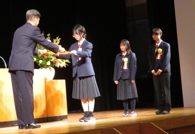 鴨宮中学校からは、3名の生徒が出席し、1名が壇上で発表しました。