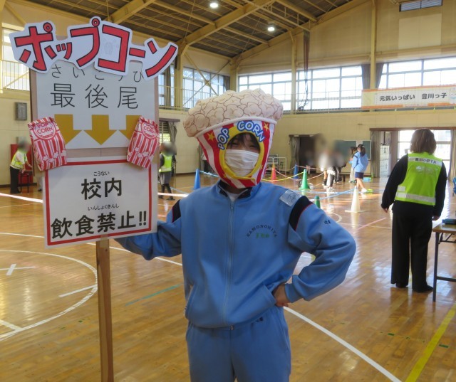 ニュースポーツの受付、ポップコーン販売など、