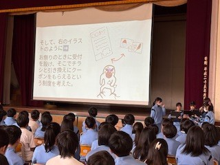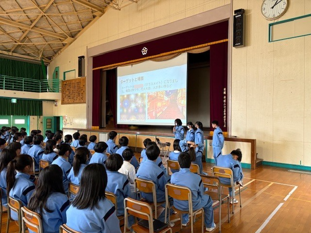 体育館で、総合で取り組んでいるSTEAM教育の学年発表が行われました。