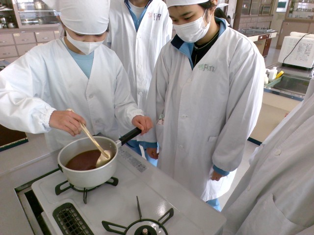 F組 お汁粉づくりの様子