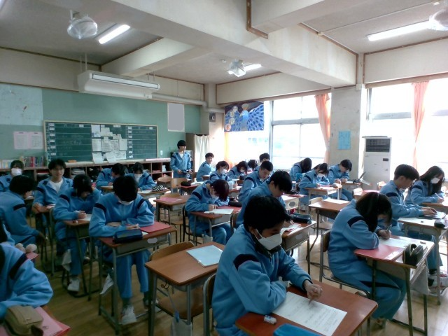 中学校生活で成長できたことや思い出、3年間を表す漢字などを記入しています。みんなが選ぶ漢字は何でしょう?