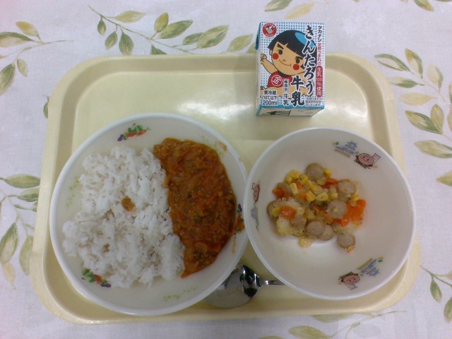 今日の給食は、牛乳、ドライカレー(麦入りご飯)、コーンとポテトのソテーでした。カレーがピリッと辛くておいしかったです。今日で1月の給食も終わりです。2月の給食も楽しみです。