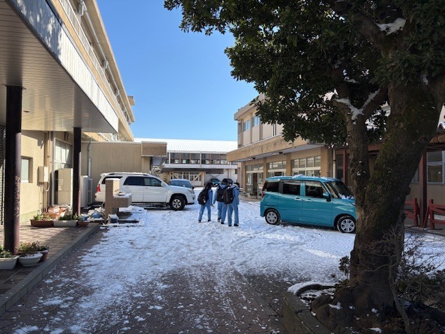 日曜日の雪の影響で、月曜日は時間が遅れての登校となりました。寒さや雪に負けず、元気に登校する姿が見られました。