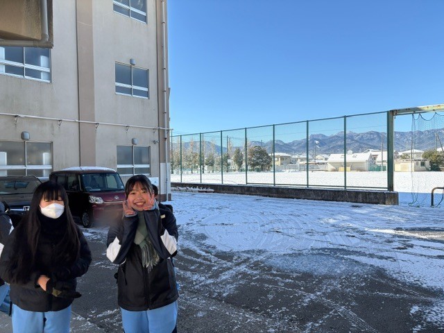 普段と違う雪景色を楽しみながら、笑顔で登校する生徒が多くいました。