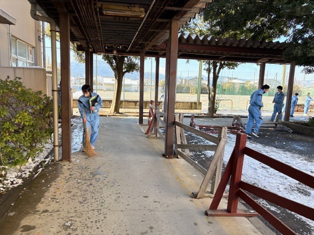 また、中には渡り廊下の雪をほうきで履いてくれる生徒もいました。