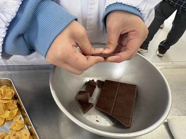 チョコを溶かしてフレークを入れた「クランチチョコ」です。
