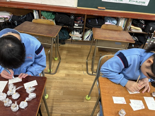 3時間目にはメッセージカードを書きました。
