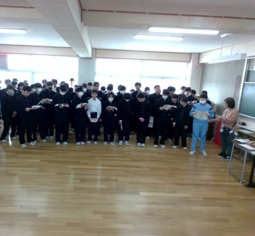 この日は、1時間目から2時間目まで音楽室で歌練習をしました。