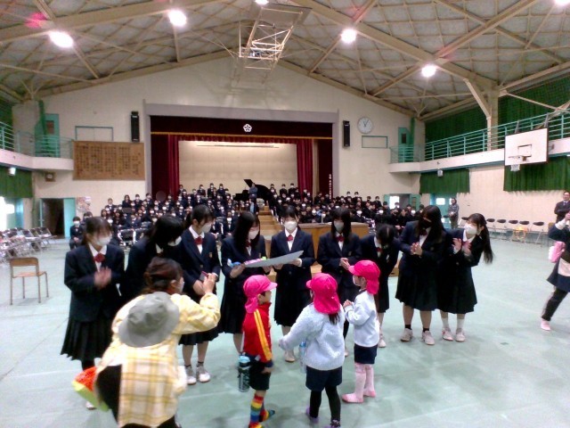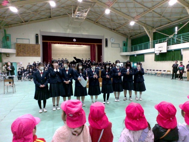 3月3日と5日に、3年生のボランティアメンバーが、放課後に矢作幼稚園に行きました。幼稚園で、園児と一緒に楽しく遊びました。