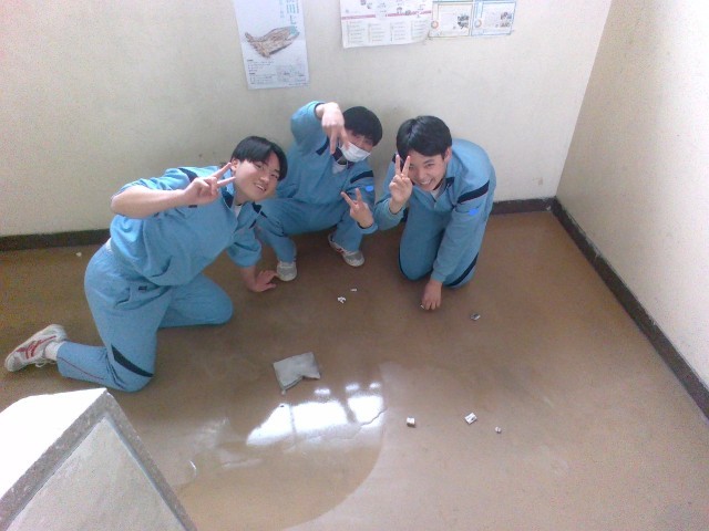 3年生、ふれあい美化作業の様子です。3年間使用した校舎を、一生懸命きれいにしました。