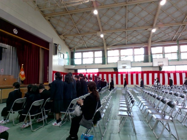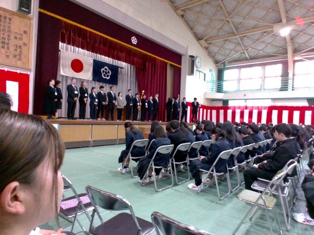 3年生が一生懸命設営した入学式会場に新入生が勢揃いです。