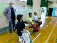 航空写真を見て、鴨宮中学校の校舎の長さがどのくらいかを手がかりをもとに考えています。