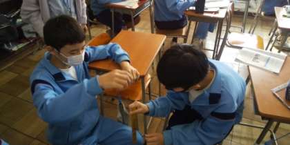 2年2組は 理科の授業でした。体の仕組みを知ろう というテーマで 友達と楽しそうに実験をしていました。