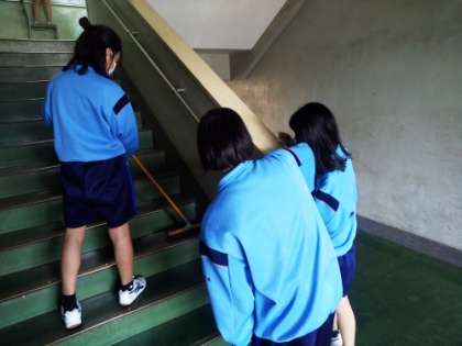 教室の扇風機の羽根の汚れも丁寧に雑巾で拭き取っていました。
