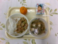 今日の給食は、牛乳、豚肉のコロッケ、生揚げの中華風煮、ご飯、わかめふりかけです。