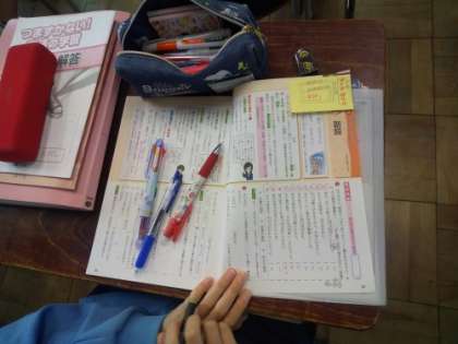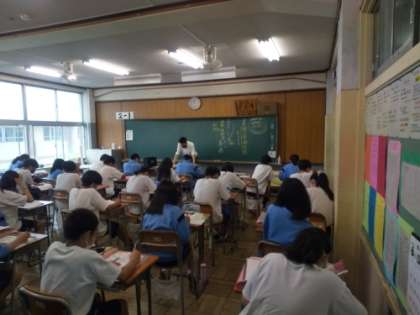 2年1組は 国語の授業でした。 内容は 先週に続いて 文法について学習していました。